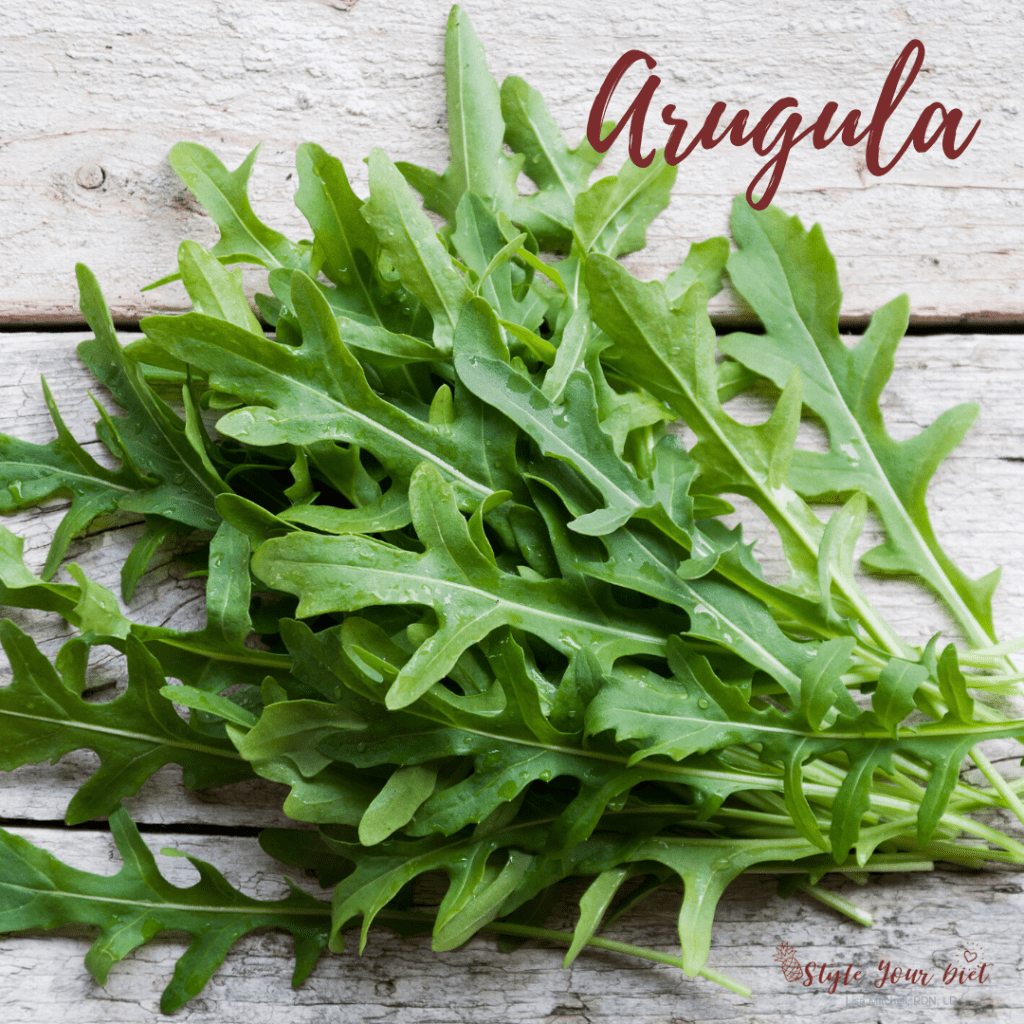 Swapping arugula for romaine is a great way to spice up a salad (literally!). This leafy green has a peppery bite and a delicate texture. Add a light citrus vinaigrette and some shaved parmesan cheese for an ultimate no-hassle dinner side salad. Arugula is a cruciferous vegetable, like its cousins broccoli and cauliflower, and therefore has lots of disease-preventative effects.