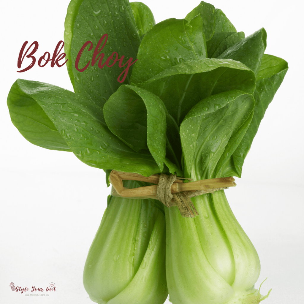 Bok Choy is a type of Chinese cabbage with a bright white stem surrounded by dark green leaves. It’s most commonly used in Asian cuisines including stir-fries and soups like ramen, but feel free to add it to salads and slaws. We love this simple recipe for sheet pan bok choy – simply place quartered bok choy on a parchment-lined sheet pan and toss with freshly grated ginger and sesame oil. Roast at 350° F until softened and serve with fresh lime wedges. Yum!