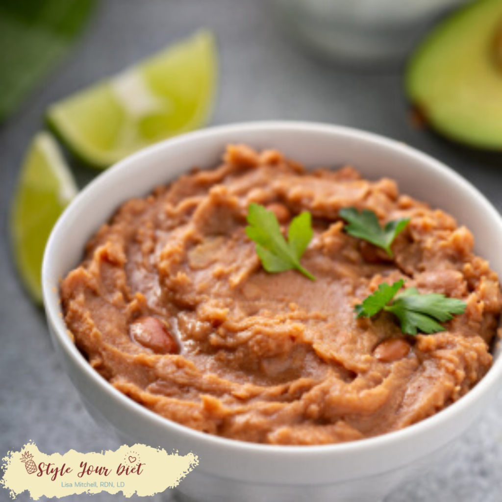 Here’s a great recipe using white beans to make a “refried bean” dip. You can serve it with vegetables like carrot chips, celery sticks, bell pepper, or endive!